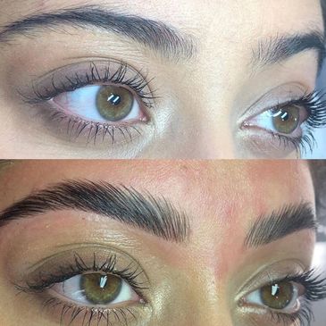 Brow lamination is a non-invasive, perm-like hair treatment that involves styling the eyebrow hair into the desired shape, making it look polished and sleek. The process helps the eyebrow hair stay in. place and helps unruly brows hold their shape. The treatment can sometimes be paired with a brow tint to give you the look of bushy brows. The chemicals used to achieve laminated brows are similar to those of a lash lift.